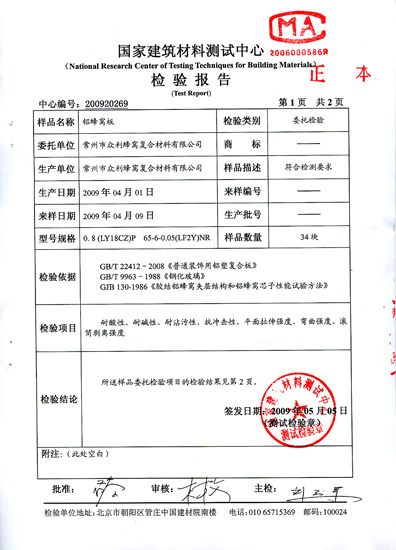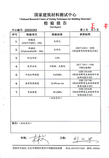 國家建筑材料檢測中心檢驗報告